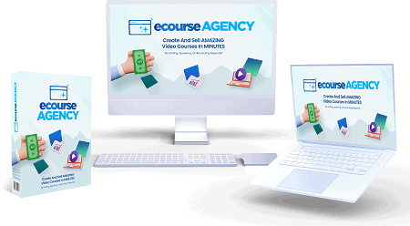 eCourse Agency is a video course creator studio and marketing system. It includes software that creates complete video courses in minutes, graphics templates to create ecovers for courses, website templates to sell the courses, traffic strategies and templates to make sales, and full step by step video training with PDF downloads.