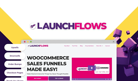 LaunchFlows is a comprehensive WordPress plugin that lets you build dynamic sales funnels, offer upsells, and include instant payment options for WooCommerce.